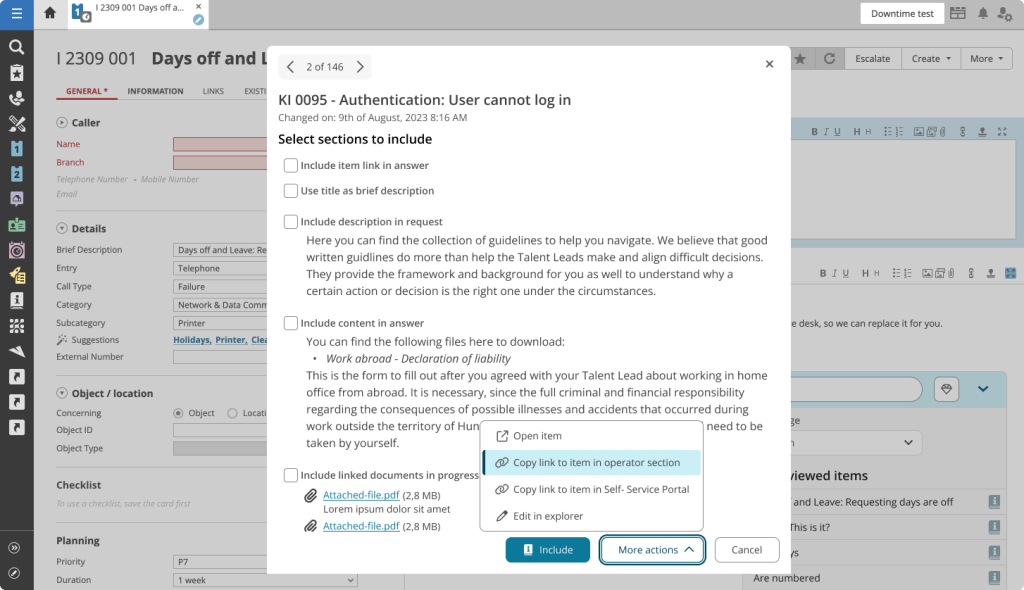 Located in another module on the Incident card, this widget offers related Knowledge items for ongoing calls. Initially, we aimed to redesign this user flow through a Design Sprint, but changing priorities led us to focus on transitioning the component to the new stack, with accessibility upgrades and minor convenience features. The UI elements were created following patterns from the Design System team. features.